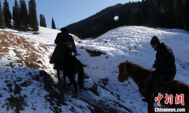 工作多年,张国林巡山经历了骑马、骑摩托车和开车的变迁。冬天路滑,他们巡山大多还是选择骑马。 王小军 摄