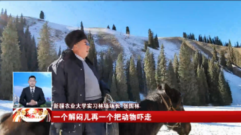 张国林说:“今天天气好没有风,有时候风大得很,红脸蛋就是风吹的人家都说我像哈萨克族,冬天来说咱们巡山的难度会不会增加,说实话巡山就是比较寂寞一点,为啥要边走边唱歌呢,一个解闷儿,再一个把动物吓走,这是一个很现实的办法。”