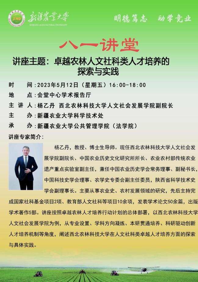 【八一讲堂预告】第二十七期:卓越农林人文社科类人才培养的探索与实践