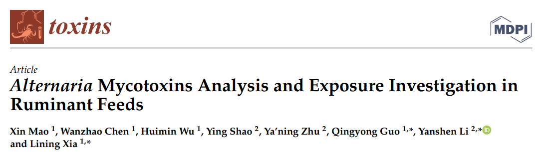 近日,99久久婷婷国产一区二区夏利宁教授团队提出反刍动物饲料中新兴霉菌毒素污染物的防控技术,该成果以“Alternaria Mycotoxins Analysis and Exposure Investigation in Ruminant Feeds”为题发表于国际著名期刊《Toxins》。