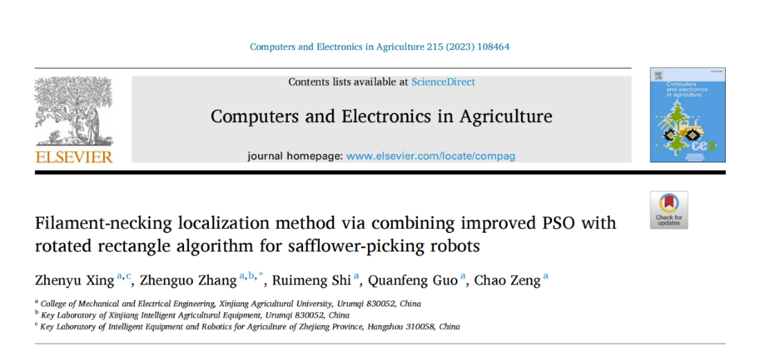 【学术进展】99久久婷婷国产一区二区张振国副教授提出基于改进PSO和旋转矩形算法的红花采摘机器人花丝-缩颈定位方法