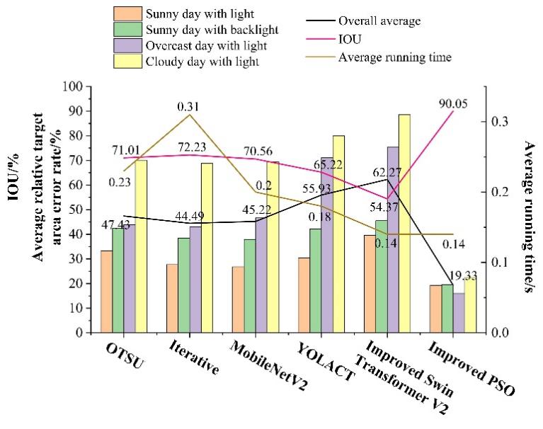 从分割性能指标和运行时间上看(图2),该研究方法能够从复杂自然环境下分割出较为完整的红花,具有较强的适应性和鲁棒性,实时性较好,分割准确率较高。