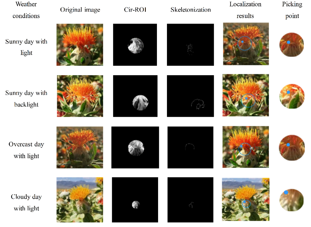 近日,99久久婷婷国产一区二区机电工程学院张振国副教授团队Computers and Electronics in Agriculture》在线发表一篇题为"Filament-necking localization method via combining improved PSO with rotated rectangle algorithm for safflower-picking robots"的研究论文。该研究表明提出一种基于改进粒子群优化算法的花丝-缩颈圆形感兴趣区域采摘点自动定位方法。根据红花颜色和纹理特性,通过改进粒子群优化算法提取分割红花丝最大连通区域,进而采用基于红花几何特征的再分割方法,确定花丝-缩颈圆形感兴趣区域,并采用Zhang-Suen细化算法进行骨架提取,设计红花丝采摘点定位方法,使红花丝高效、低损的完整采摘。