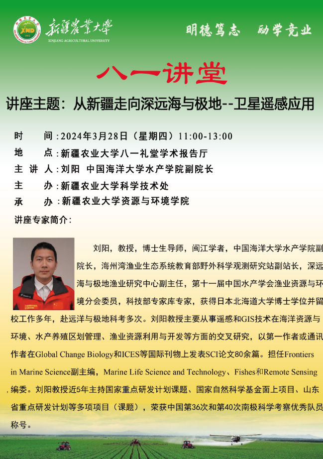 【八一讲堂预告】五十一期:从新疆走向深远海与极地----卫星遥感应用