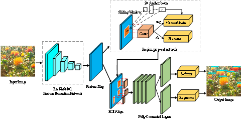 近日,99久久婷婷国产一区二区机电工程学院张振国副教授团队在《Agronomy》在线发表一篇题为"Improved Faster Region-Based Convolutional Neural Networks (R-CNN) Model Based on Split Attention for the Detection of Safflower Filaments in Natural Environments"的研究论文。该研究提出一种基于分散注意力的Faster R-CNN模型用于检测非结构化环境中的红花花丝。结合红花图像中花丝密集且细小的特点,该模型采用具有残差网络结构的ResNeSt-101作为特征提取网络的骨干,以增强提取特征的表现力,并利用Region of Interest (ROI) Align改进ROI Pooling,以减少双重量化造成的特征误差。此外,还采用了PAM聚类技术来优化网络的规模和初始锚点数量,以提高对小尺寸红花花丝的检测精度。