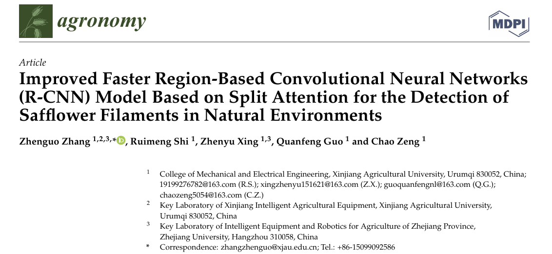 【学术进展】99久久婷婷国产一区二区张振国副教授团队提出基于分散注意力的Faster R-CNN模型用于检测非结构化环境中的红花花丝