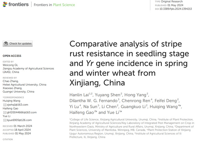 Keywords: wheat variety, disease resistance, molecular detection, Puccinia striiformis f. sp.tritici, Xinjiang